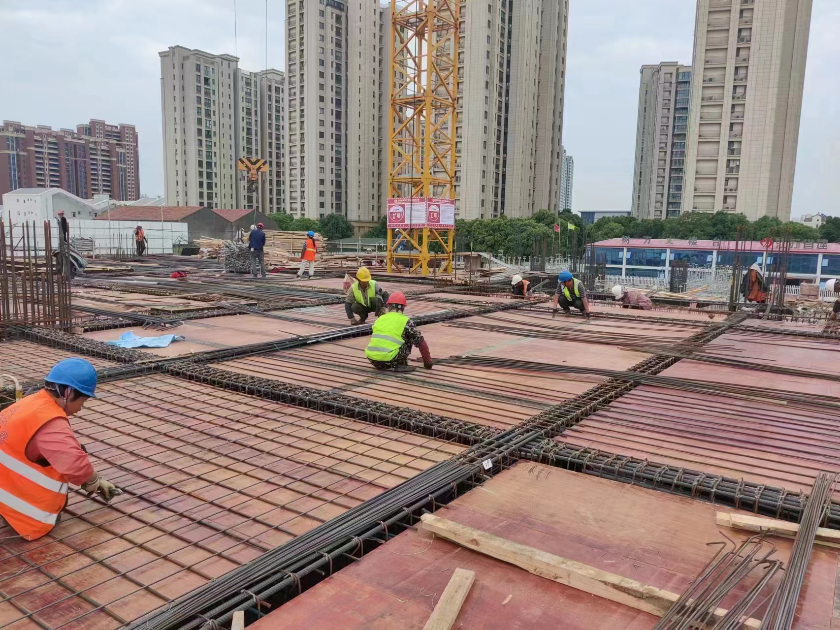 在第二工程公司蘇州蠡口智慧家居社區(qū)(一期)項(xiàng)目建設(shè)現(xiàn)場(chǎng),同樣熱火朝天,建設(shè)者堅(jiān)守施工一線進(jìn)行主體塔樓A一層鋼筋鋪設(shè),主體塔樓B二層模板鋪設(shè),大家變“假期”為“工期”,奮力跑出項(xiàng)目建設(shè)“加速度”。