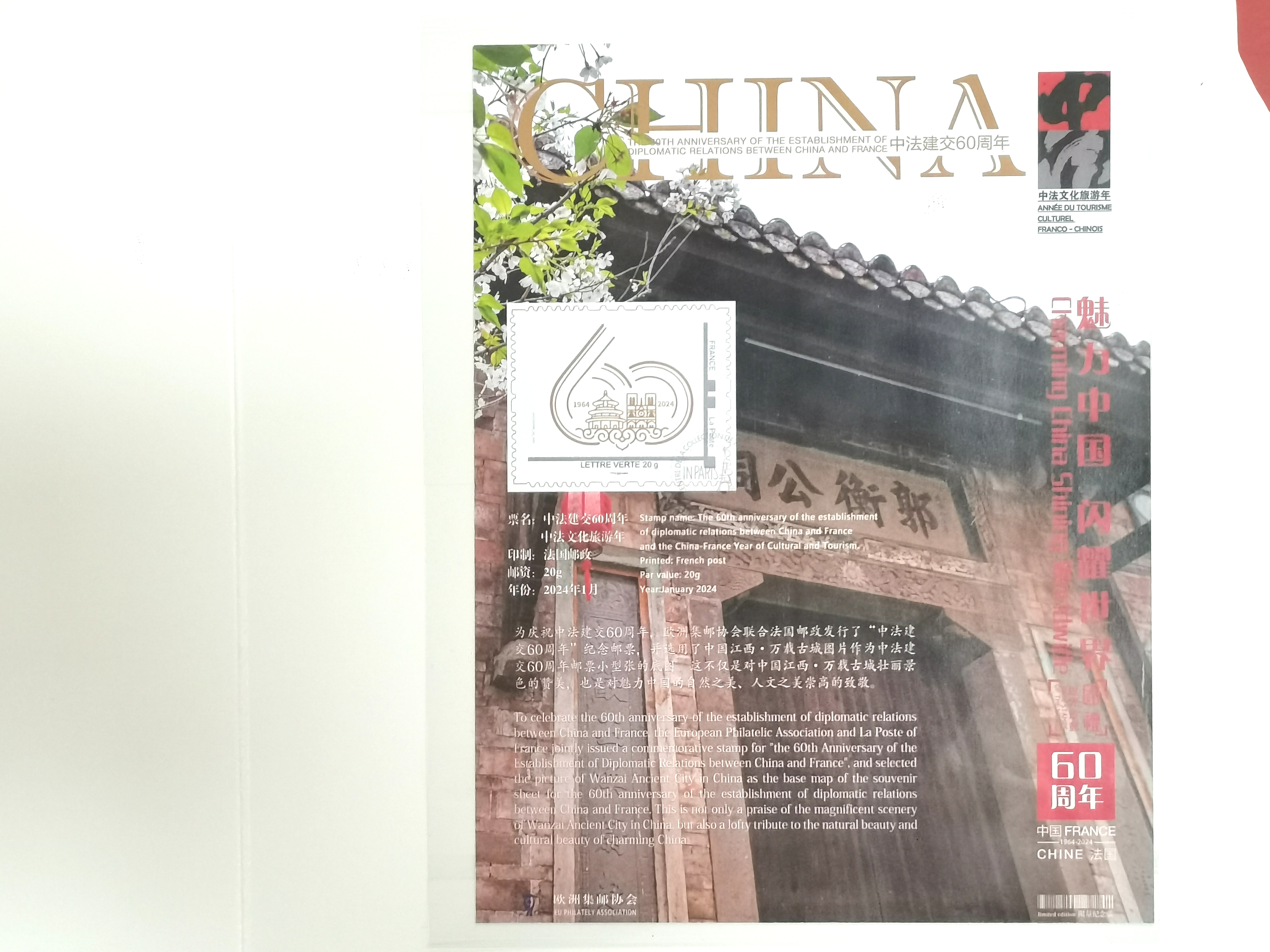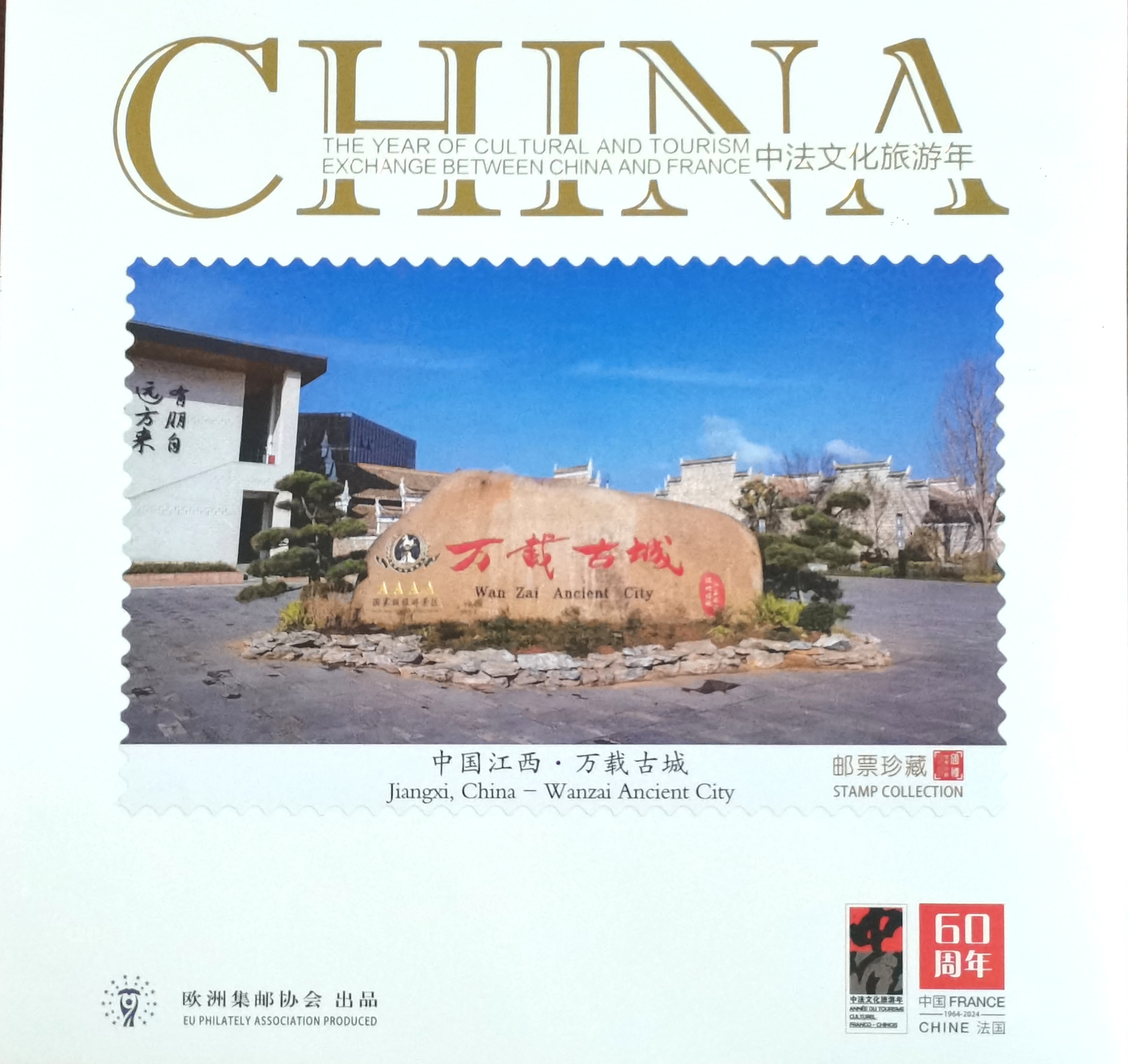 2024年是中法建交60周年暨中法文化旅游年。江西萬載古城作為中國旅游景區(qū)的代表,憑其獨特魅力,成功登上法國郵票,全球發(fā)行。這代表了國際社會對萬載古城的認(rèn)可,更進(jìn)一步提升了萬載古城的國際影響力和品牌價值,讓世界以郵為媒,再次發(fā)現(xiàn)中國之美。